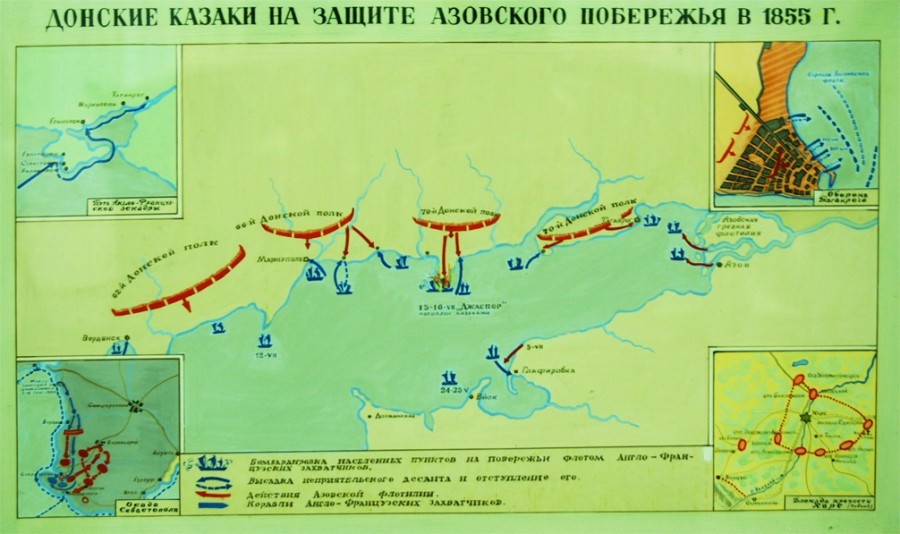 Правильная карта расположения донских казачьих полков на побережье Таганрогского залива в 1855 г. А то на музейной карте три полка всего - а их было поболе.