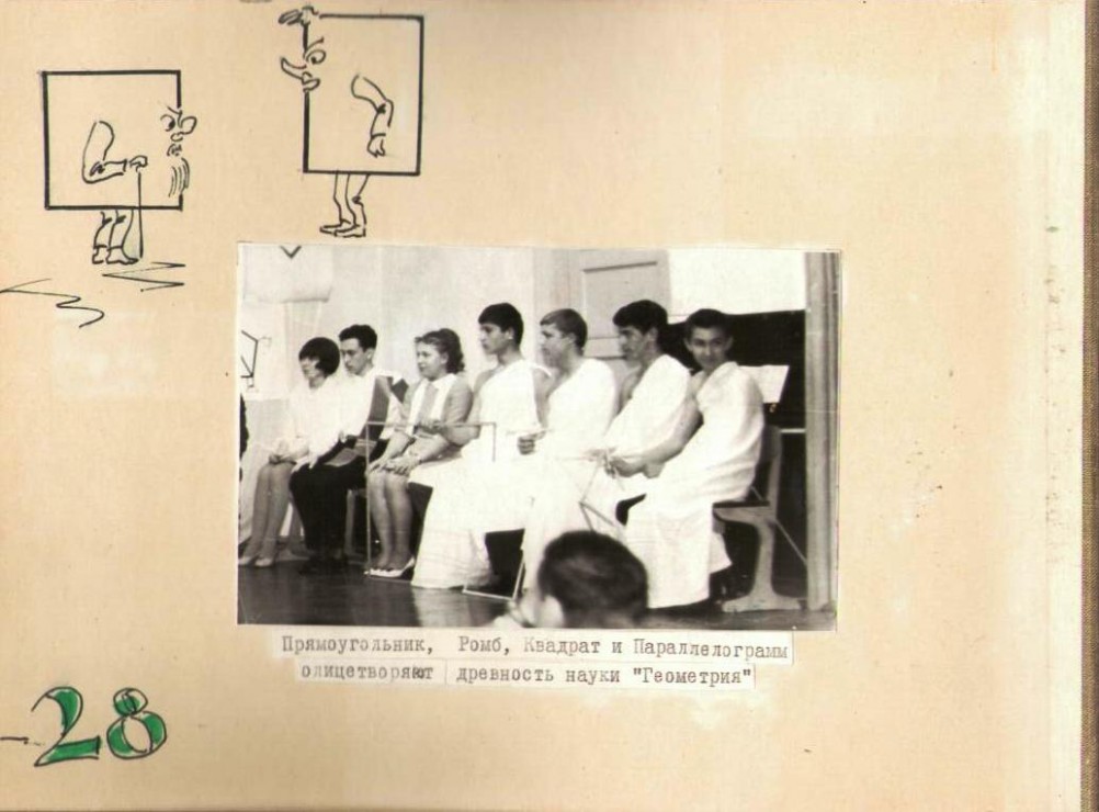 Юрий, огромное Вам спасибо. Вы подтвердили - рукописи ( в данном случае. - альбом) не горят или не погибают в мусоре. А вот память человеческая подводит. Я, запечатлённый на паре фотографий, абсолютно не помнил этого события. Обзвонил троих моих одноклассников. Никто из них также не помнит факта этого мероприятия. Явно, что это наш 9-й класс. Значит точно - апрель 1968 года. И ещё добавлю. - запечатлённый на одном из первых фото доцент РГУ Жак вёл у нас программирование. Это было взамен производственной практики.
