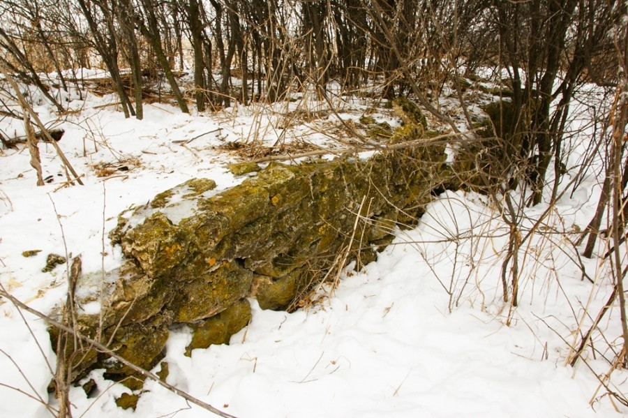 Это самая сохранившаяся часть крепости. Сложенная из известняка невысокая стена шириной около двух метров. Что это? Невозможно предположить, что это остатки оборонительного сооружения. Для обороны от казаков, не имевших тяжелой артилерии, вряд ли стоило строить такие стены. И в то, что это остатки более поздних строений – не верю. Очень добротная кладка, и, судя по тому, что эта стена не развалилась за столько лет, говорит о том, что под ней фундамент. Предположу, что это остатки крепостных ворот.