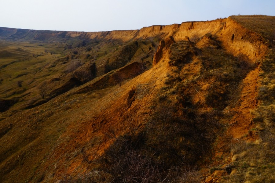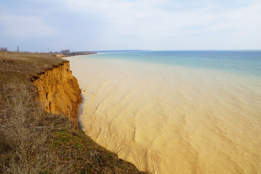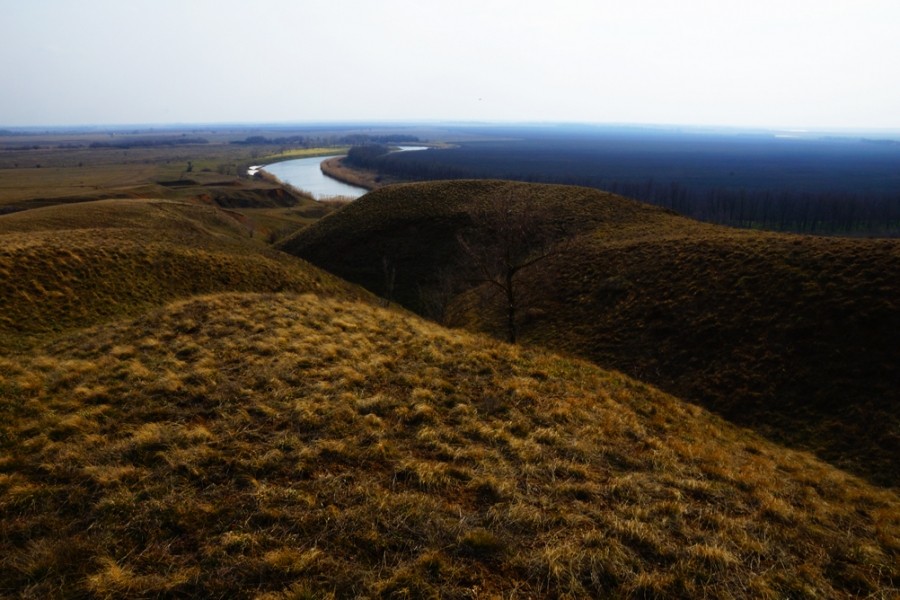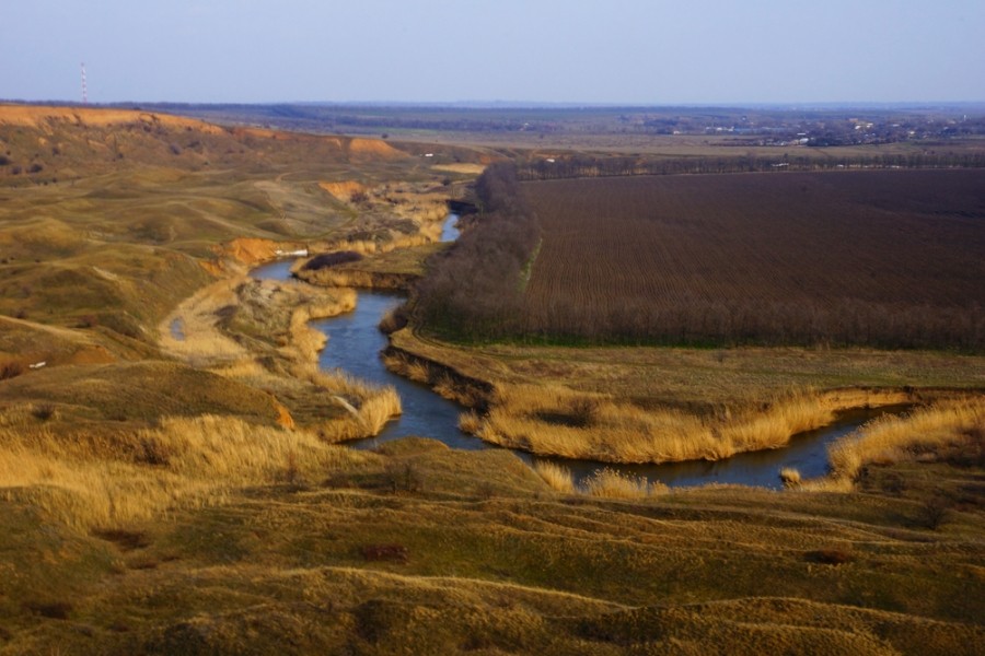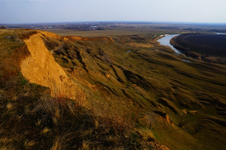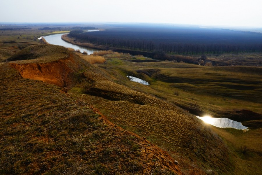 Круто петляющий Сал подмывает высокие глиняные обрывы. Они заметны издалека.