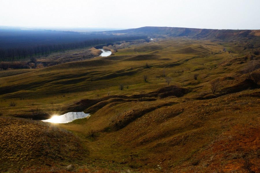 Междуречье Маныча и Сала. Я переехал Маныч по плотине Веселовского водохранилища и покатил по древней равнине междуречья. Маныч проводил меня ослепительно голубым и желтым.
