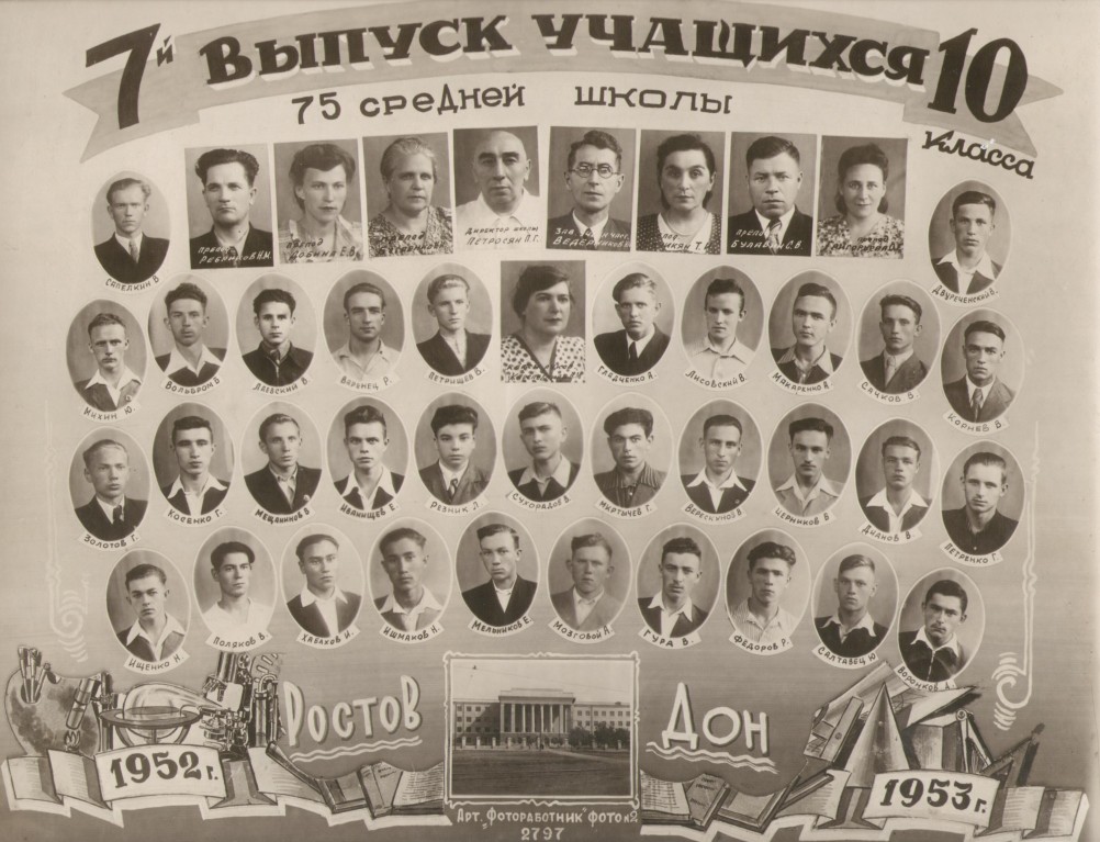 А среди выпускников - Виктор Дианов. Он же «Тюлень», военный лётчик, сын многократно упоминавшегося на Меотиде ростсельмашевского стахановца, затем многолетнего начальника цеха серого чугуна Родиона Григорьевича Дианова.