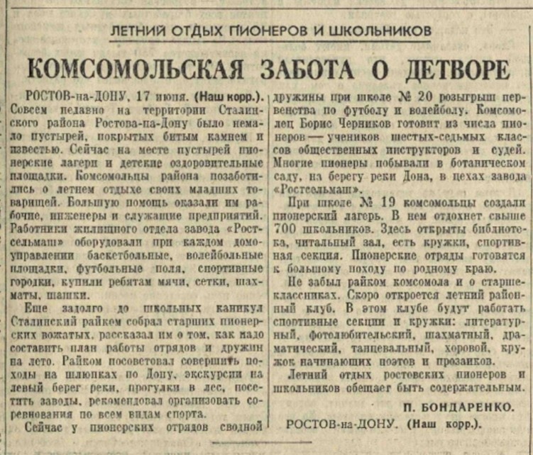Что-то я слышал о пионерском лагере при школе, когда учился в млаших классах.