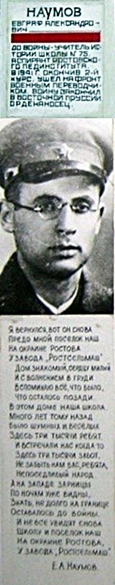 Офицера наградили очень почётными орденами и медалями. Был переводчиком, выполнял ответственные задания. Но при чём тут наша школа? Что-то в памяти моей осталось, где-то я встречал упоминание фамилии Наумов. Стенды, да конечно же стенды! Но их все отвезли на свалку… В этот момент мне подумалось, что на месте той свалки, где оказались стенды и другие материалы, можно было бы открыть ещё один музей школы. Но не всё потеряно, где-то скрыта разгадка, фотографии некоторых стендов сохранились. Вот этот стенд!