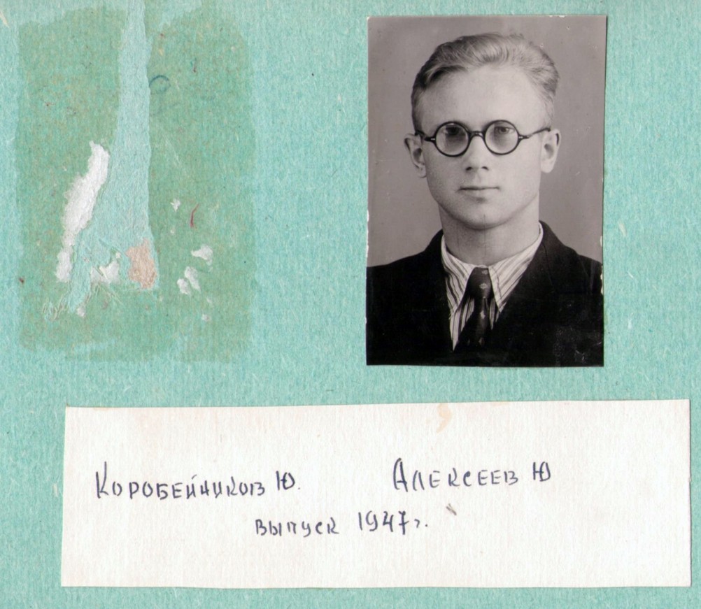 Его фотографию кто-то оторвал из альбома, чтобы поставить, вероятно, в какую-нибудь галерею известных выпускников. Но фамилию учёного в альбоме написали с ошибкой.