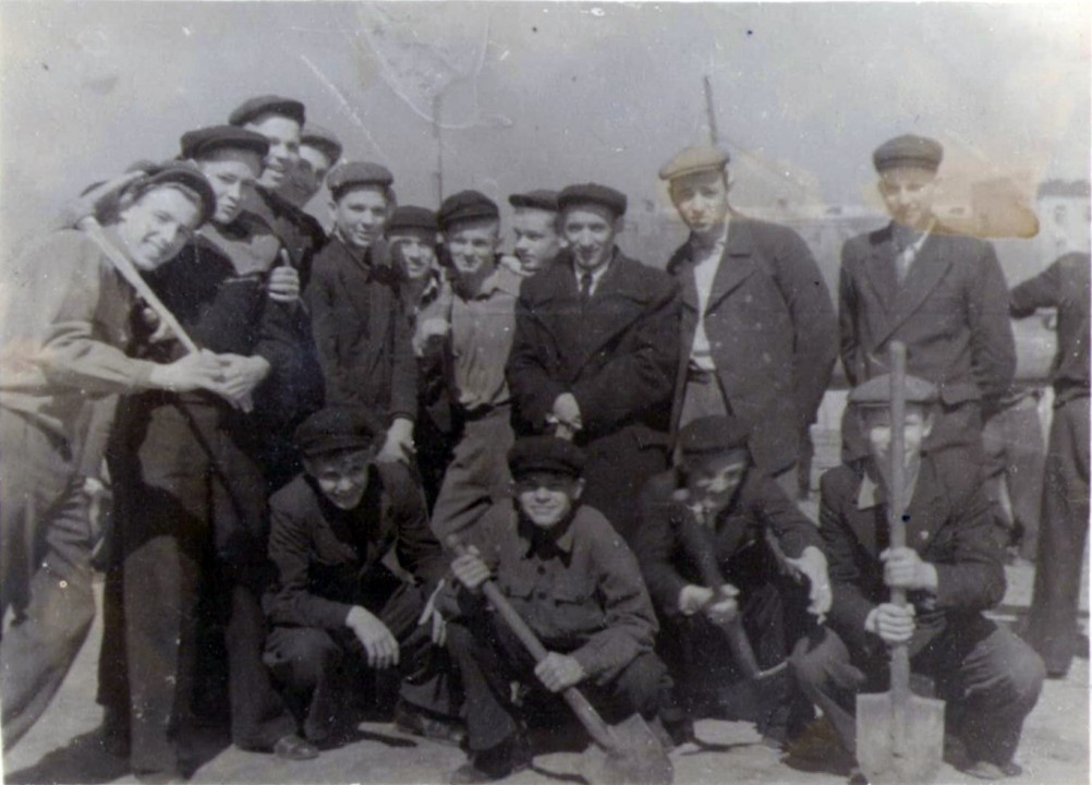 Ученики активно принимали участие в восстановлении школы. Это фото подписано - "Группа учащихся школы на воскреснике". Скорее всего на фото ученики старших классов школы с учителем, но, возможно, это 1946 год и ученики с директором школы Поляковым Виталием Владимировичем - его фотографии в нашей коллекции до сих пор нет, а потому это предположение. Ещё совсем недавно нам эту загадку мог разгадать свидетель тех лет, ещё недавно...