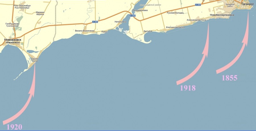 Таганрогский залив – капля в мировом океане. Но эта капля на перекрестке мировых путей и событий. Не было большой неожиданностью обнаружить, что на коротком участке азовского берега - чуть более полусотни километров, за небольшой период времени - чуть более полусотни лет, три раза высаживались достаточно крупные военно-морские десанты. Такие разные по составу и целям, но одинаково неудачные.