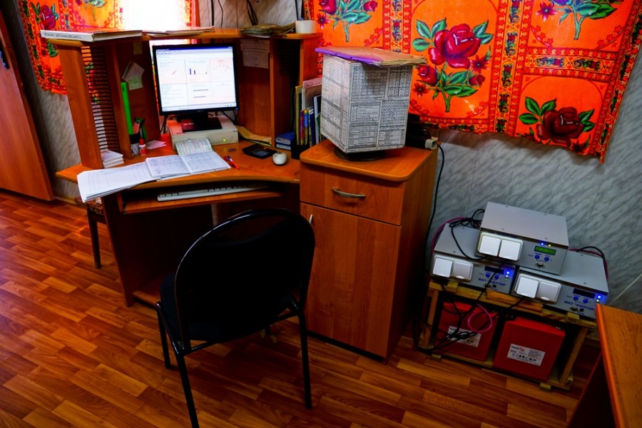 Рабочее место метеоролога привело в восторг. Оказывается, ему не нужно теперь в тулупе и валенках пробивать путь к занесенным сугробами приборам. Информация с метеоплощадки передается прямо на экран компа. Но аккуратно разлинеенный журнал присутствует.
