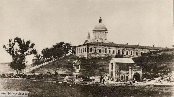 После войны и до начала строительства Северного жилого массива, вокруг церкви голо. Хотя на левом борту балки Камышевахи видны высокие деревья. (фото 1947 г.)