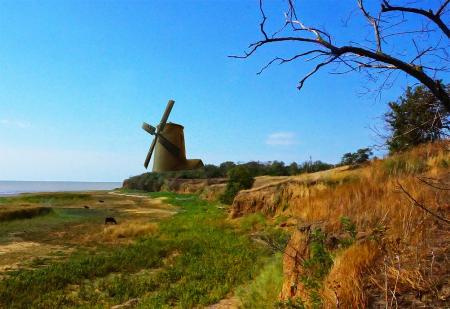 Много лет собирался поискать остатки этой мельницы (знал, что она давно рухнула в наступающий Таганрогский залив), а выбрался только в прошлые выходные. На берегу, в том месте, где когда-то стояла мельница, сразу бросаются в глаза полузаросшие, полузаброшенные, полуразрушенные строения.
