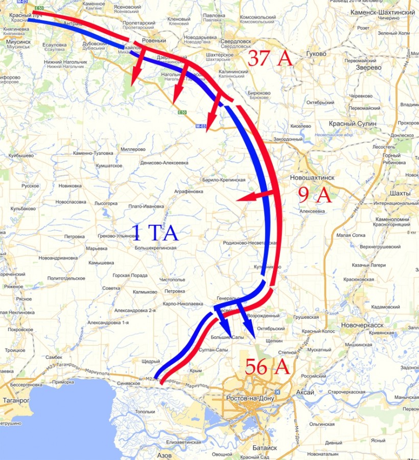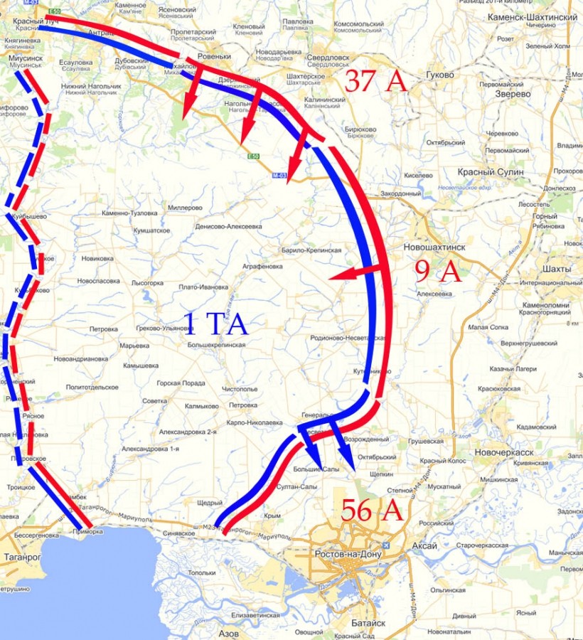 22 – 23 ноября фронт приходит в равновесие. Наши ударные группировки 9-й и 37 –й армий выходят на рубеж реки Тузлов.